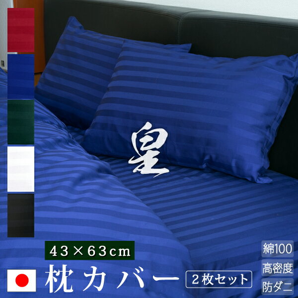 【メール便送料無料】2枚セット 【日本製】《皇》80番手 サテンストライプ ファスナー式 ピローケース 43 × 63 cm ※メール便は同梱不可、日時指定不可、代引き不可となっております。