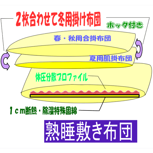 (一般用抗菌は繊維に直接抗菌剤を吹き付けています) 春・夏・秋・冬使える2枚合わせ快適掛け布団 掛け布団「オールシーズン」タイプです。