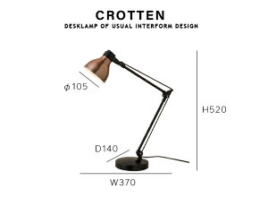 本格派のデスクライトはやや大きめのベースを採用しているものが多いのですが、インテリア雑貨寄りのこのCrottenは比較的コンパクトでちょっと小さめのデスクにも採用してもらえそうです。