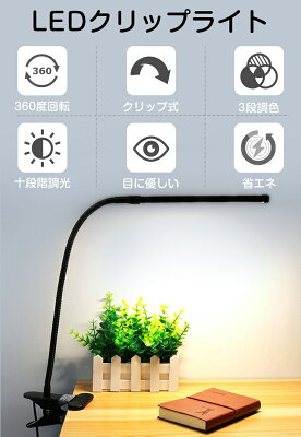 クリップライト LEDライト クリップ デスクライト クランプ おしゃれ 明るい 学習机 読書灯 テレワーク 10段階調光 3色モード 目に優しい スタンドライト 卓上 勉強 机 ベッドサイド 撮影ライト YouTube 生放送 ビデオ クリスマス